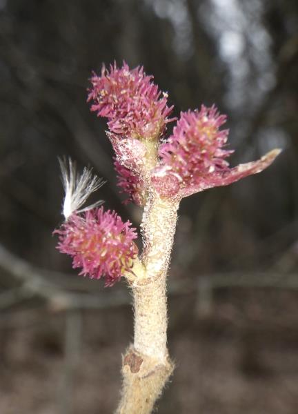 samičí květy a rašící pupeny